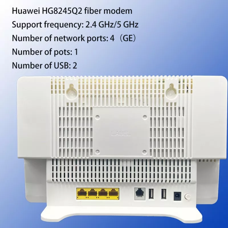TENKILOMETERS yüksek kaliteli HG8245Q2 DUAL BAND WIFI5 XPON ONU ONT FTTH, Huawei'nin tamamen optik erişim çözümündeki yönlendirme tipi bir ONT'dir. Kullanıcılara ultra geniş bant erişimi sağlamak için GPON teknolojisini kullanır. Bu model 4 GE+2 POTS+1 USB+2 WiFi (4 GE bağlantı noktası, 2 POTS bağlantı noktası, 1 USB bağlantı noktası, 1 2.4G WiFi bağlantı noktası ve 1 5G WiFi bağlantı noktası) sunar. Yüksek iletim performansı, ses, veri ve HD video hizmetlerinde kullanıcı deneyimi sağlar ve müşterilere ideal bir tamamen optik erişim çözümü ve geleceğe yönelik hizmet destek yeteneği sağlar.