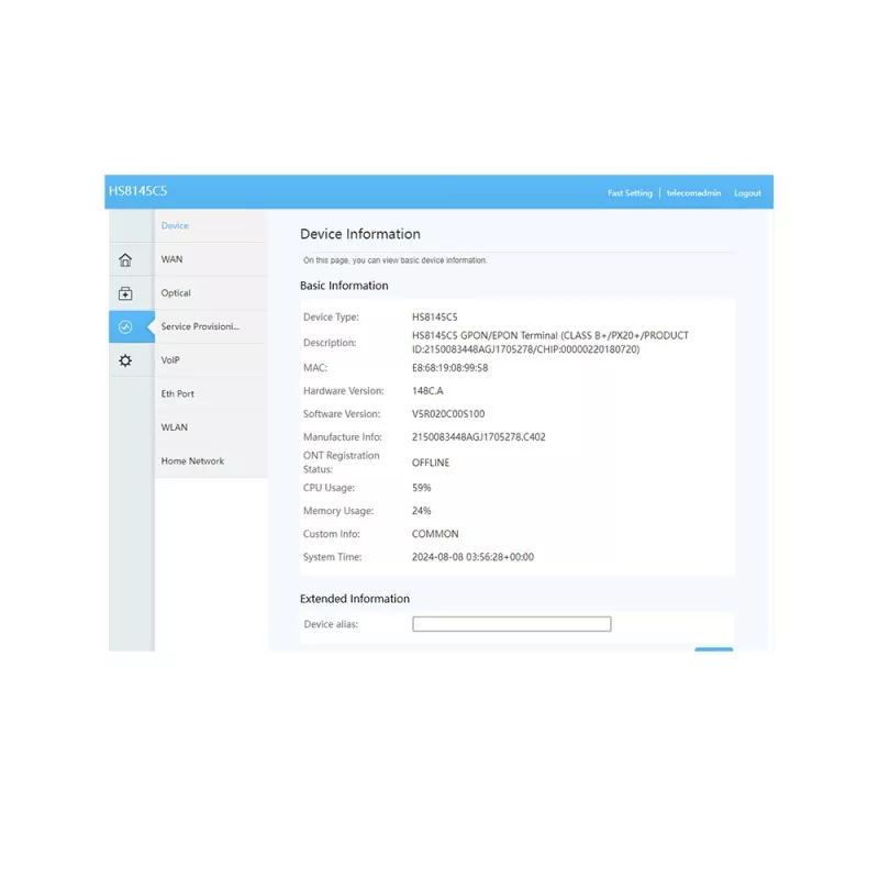 GPON teknolojisinden yararlanarak evlere ve küçük ofislere ultra geniş bant erişimi sağlar. Bir POTS bağlantı noktası, bir Gigabit Ethernet (GE) bağlantı noktası ve üç Hızlı Ethernet (FE) otomatik uyarlama bağlantı noktasının yanı sıra bir Wi-Fi bağlantı noktasıyla donatılan bu, çeşitli cihazlar için kusursuz bağlantı sağlar.